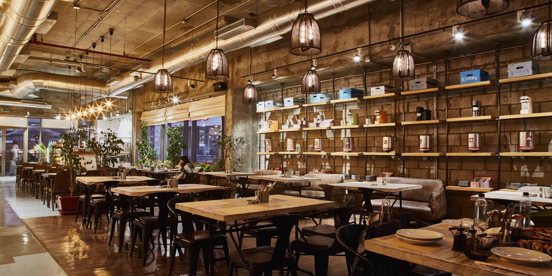 Eatery is designed to utilize natural light which brings out its rustic industrial design, earthy colors, and greenery